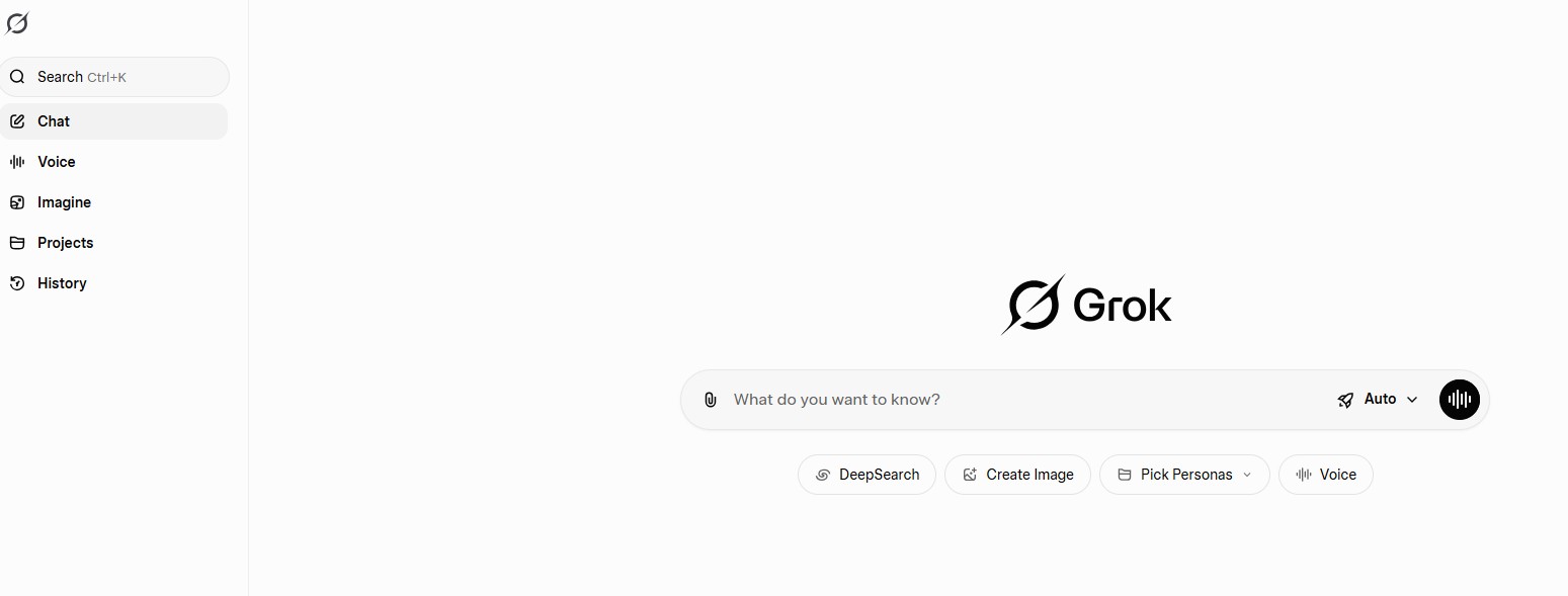 ۱. Search (جستجو): این بخش برای جستجوی سریع در گفتگوها و محتوای قبلی استفاده می‌شود. در سایت هوش مصنوعی گراک می‌توان با کلید میانبر (Ctrl + K) به جستجو دسترسی داشت و مکالمات یا موضوعات قبلی را پیدا کرد.