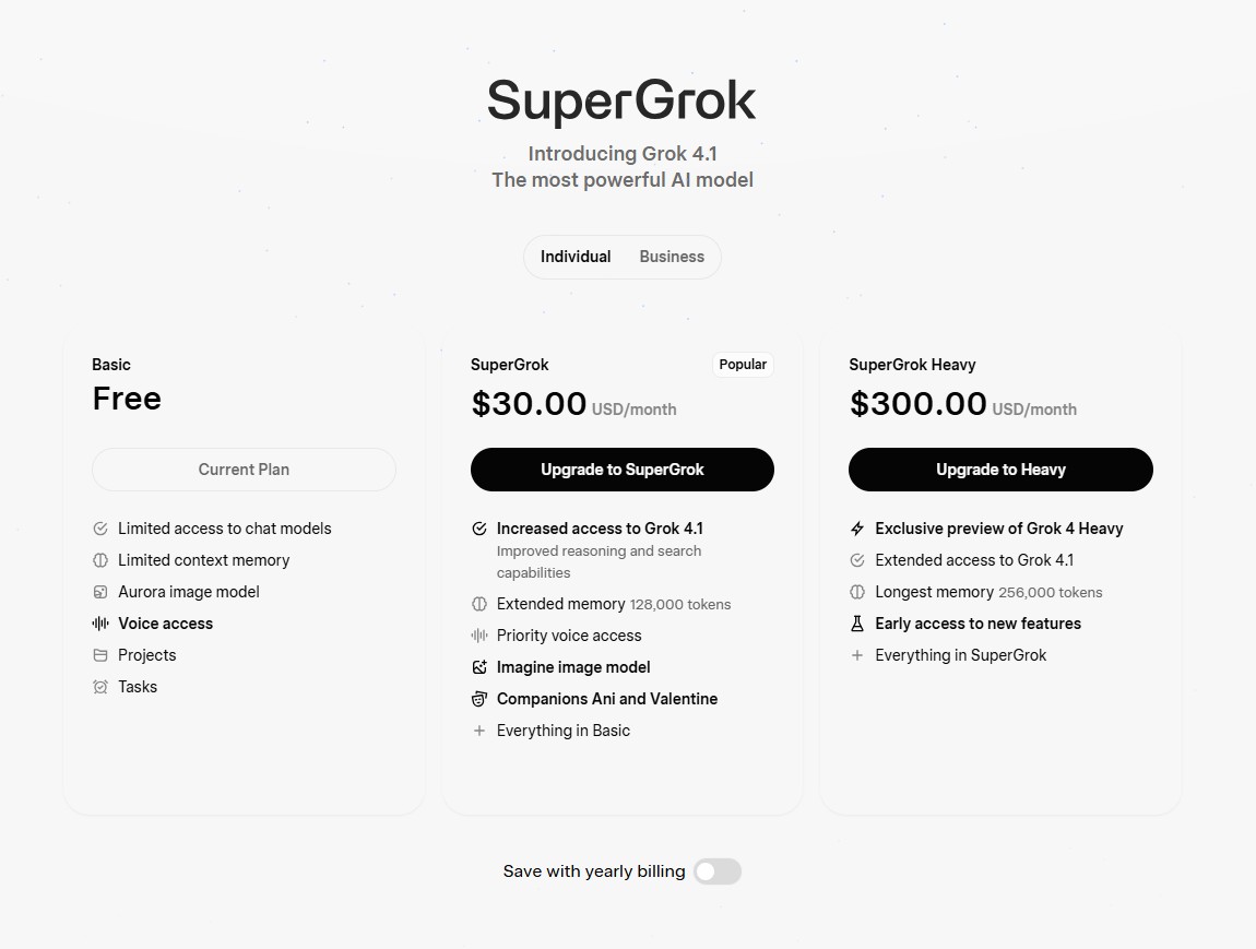 توجه: این سطوح ممکن است با به‌روزرسانی‌های xAI تغییر کند، و دسترسی به ویژگی‌های پیشرفته مانند Voice Mode معمولاً نیاز به پلن پولی دارد.